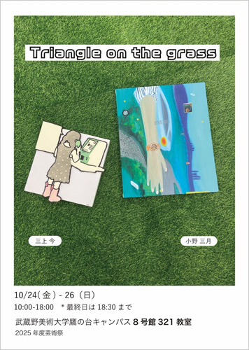 2025年度武蔵野美術大学芸術祭にて、修士課程日本画コース在籍中の小野三月と三上今による二人展『Triangle on the grass』を開催します。