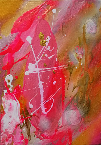 抽象作品「ピンクに弾ける」が入選し、作品と、作品を使用したラベルのお酒を展示していただけることになりました。