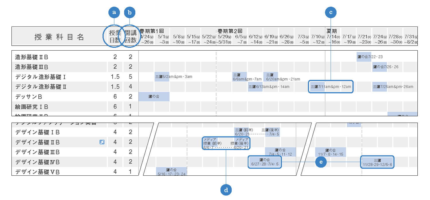 前年度に抽選のあった主な科目については、『Webシラバス』や月刊誌『武蔵美通信』3・4月号に掲載しますので確認してください。